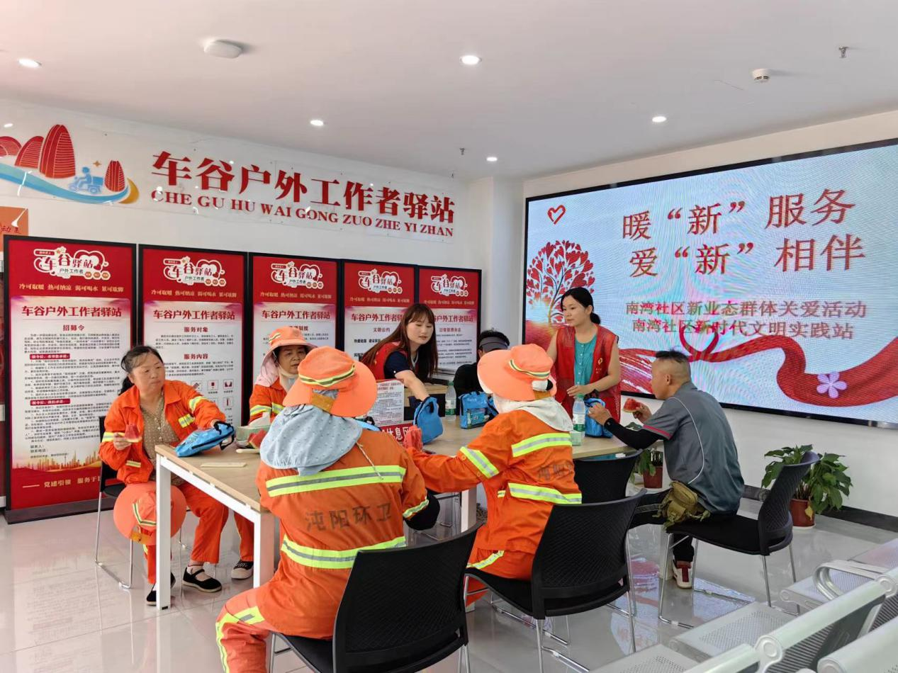 车谷融媒7月25日讯 7月24日,武汉经开区沌阳街道南湾社区户外工作者驿站组织开展主题为“暖‘新’服务 爱‘新’相伴”的新业态群体关爱活动。