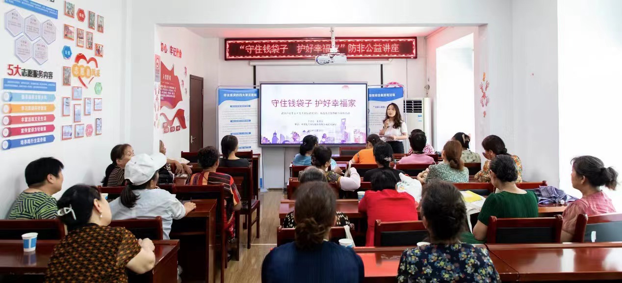 7月23日上午,武汉市处非办会同经开区处非办、经开区民政局、长江日报传媒集团组织的防范非法集资公益讲座走进武汉经开区沌口街道万家湖社区,辖区40余位老人及相关社区工作人员参与活动。