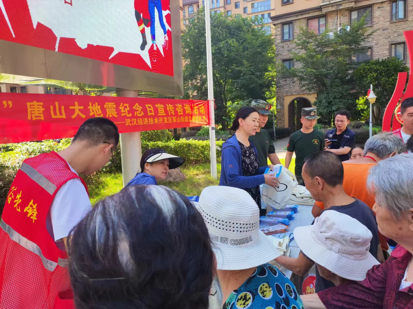 “立即切断电闸,关掉煤气,暂避到洗手间、桌子及床铺下等跨度小的地方,震后迅速撤离……”武汉经开区应急局工作人员在咨询台前,用通俗易懂的语言向过往居民讲述着地震基础知识、地震来临时不同场所的避震方法以及防震减灾法律法规等内容。