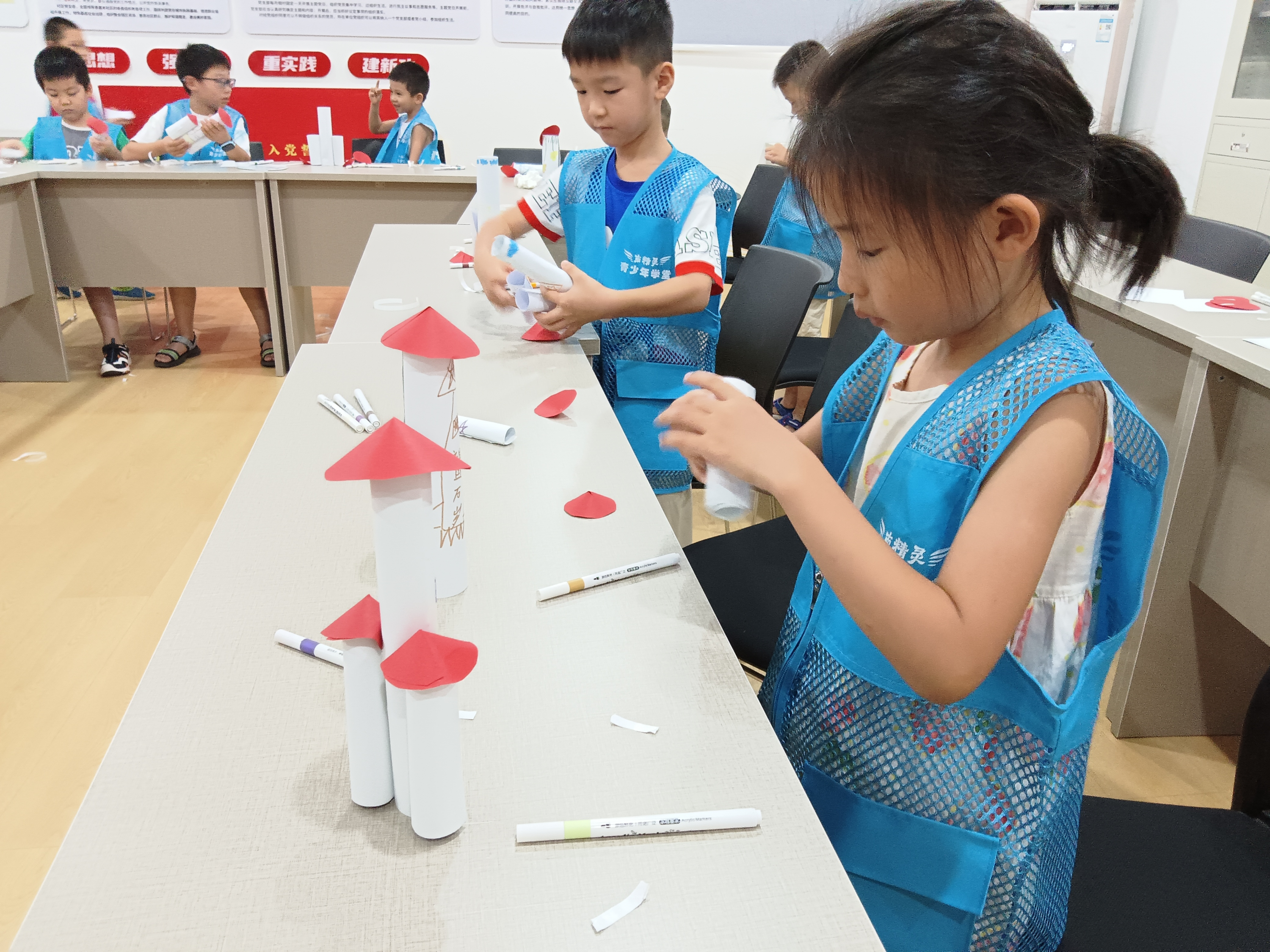 活动的最后,青少年们亲手制作了自己的太空火箭模型。在社工的指导下,他们利用彩纸、胶水、剪刀等材料,充分发挥自己的想象力和创造力,完成了这一具有纪念意义的作品。