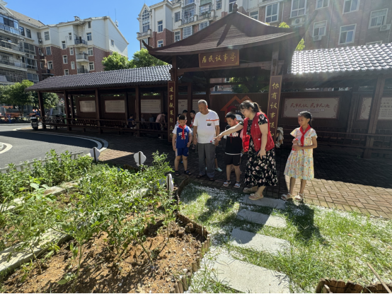 在老党员的带领下,孩子们参观了近期改造的电动车充电棚、“@家园”邻里汇,了解了居民们认领花园、翻新花圃、自发巡查和社区共同打造维护“@家园”邻里汇背后的暖心故事。