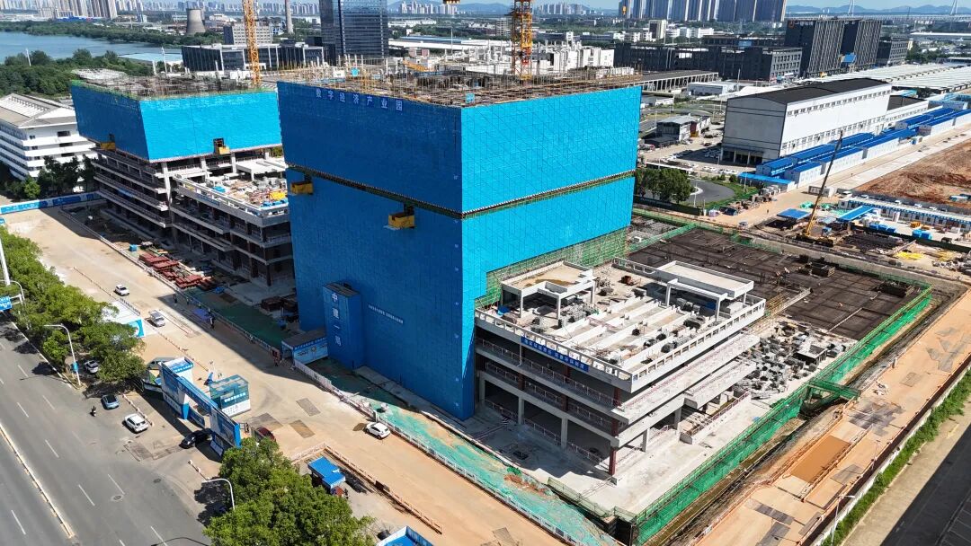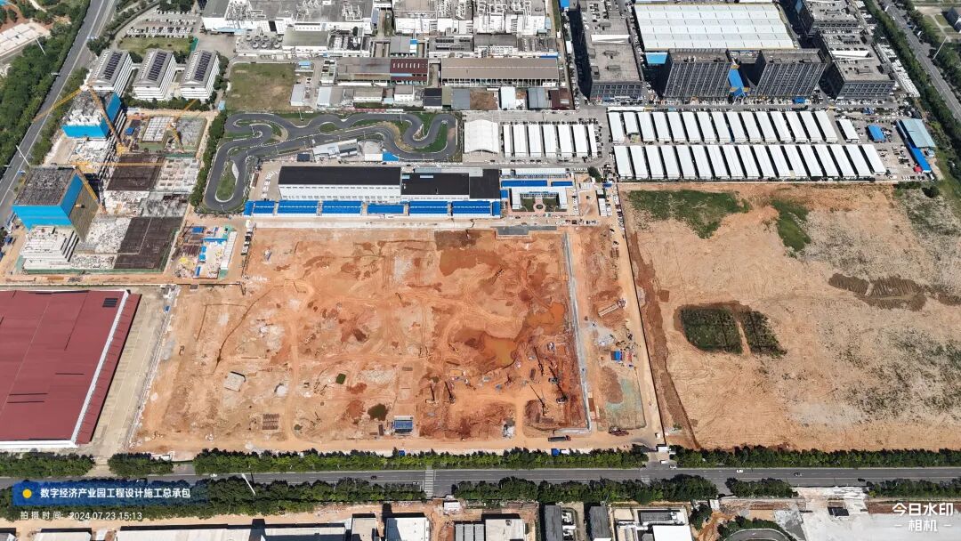 “团队全力冲刺项目建设工程节点,项目建设进展相比合同工期,提前一个月有余。”施工单位中建一局数字经济产业园项目负责人沈玉龙介绍,目前一期地块19层公寓楼已施工至地上第9层,21层办公楼已施工至地上第9层,展厅及配套商业用房已封顶,其余区域正在进行地下室施工,冲刺年底完成主体结构封顶;二期地块支护桩全部完成,土方开挖8.5万立方米,完工率20%,桩基完成10%。