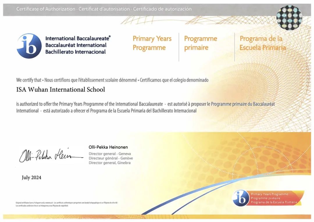 车谷融媒8月2日讯 7月24日,武汉爱莎外籍人员子女学校小学部与幼儿园收到来自国际文凭组织(IBO)的确认函,成功获得了国际教育界含金量极高的IB PYP授权,正式成为全球5000多所IB世界学校的一员。