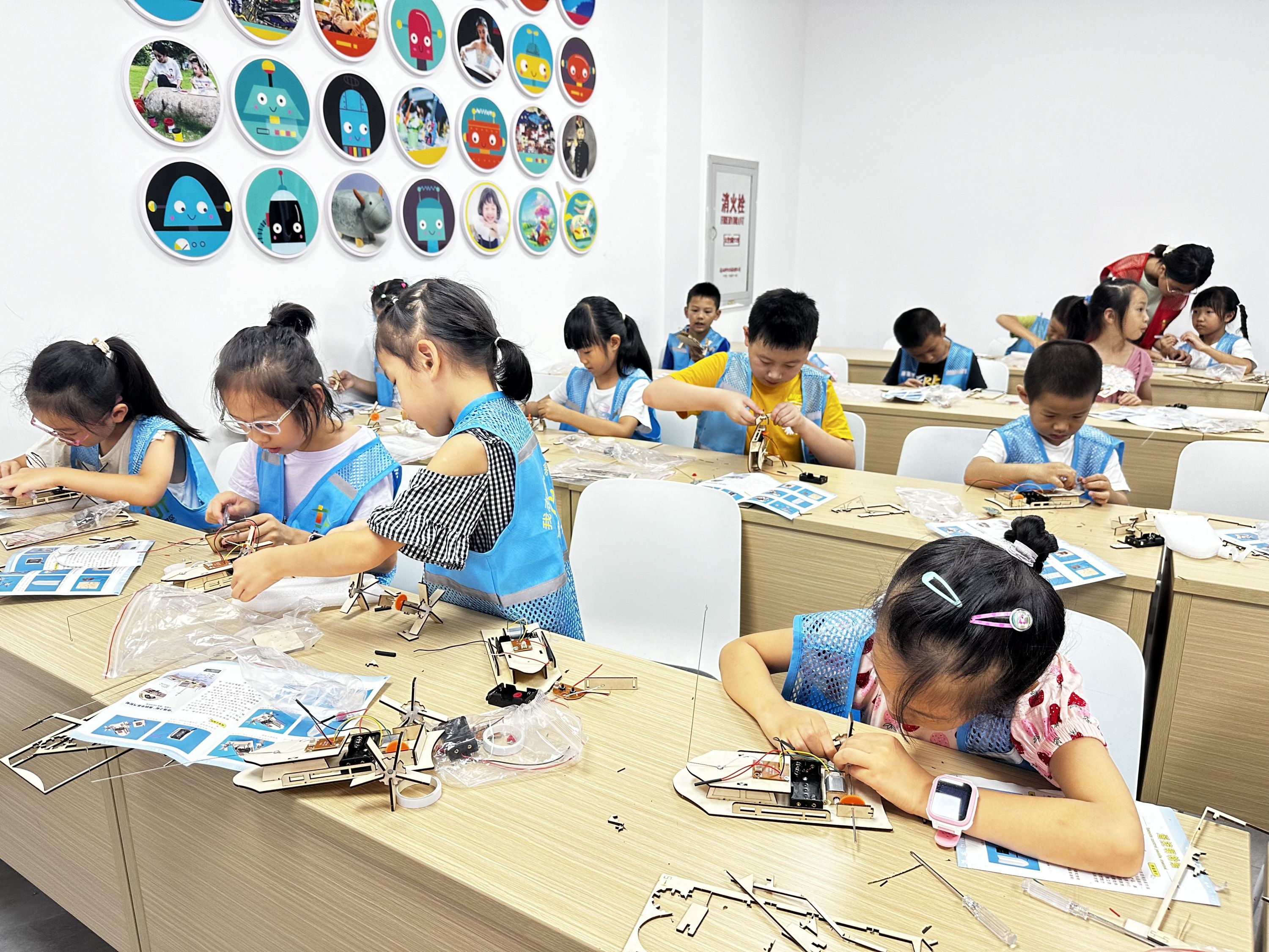 在社工和志愿者的指导下,孩子们小心谨慎地拼接每一块零件,时而交流心得,时而举手求助。组装船身、固定电池舱、连接电线、安装轮子、拼装遥控板……每一个步骤都在考验着孩子们的耐心和动手能力。
