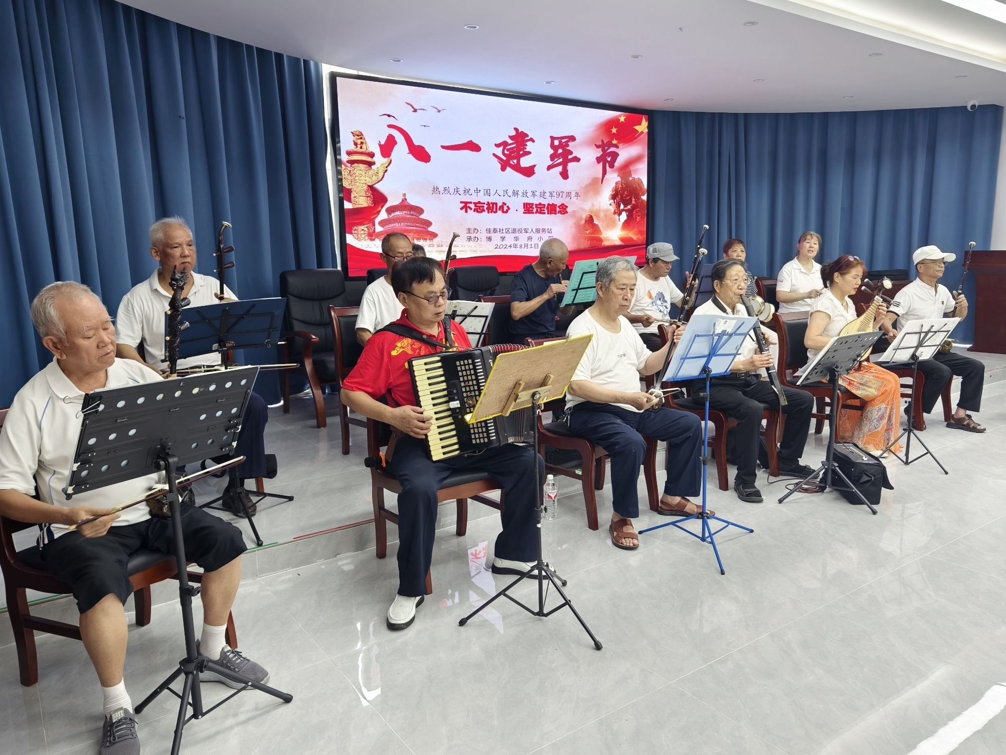 车谷融媒8月3日讯 8月1日,沌阳街道佳泰社区联合沌阳街退役军人服务站,组织辖区退役老兵、党员和志愿者,开展庆“八一”文艺汇演。吸引了众多社区居民及退役军人的热情参与,共同回顾峥嵘岁月。