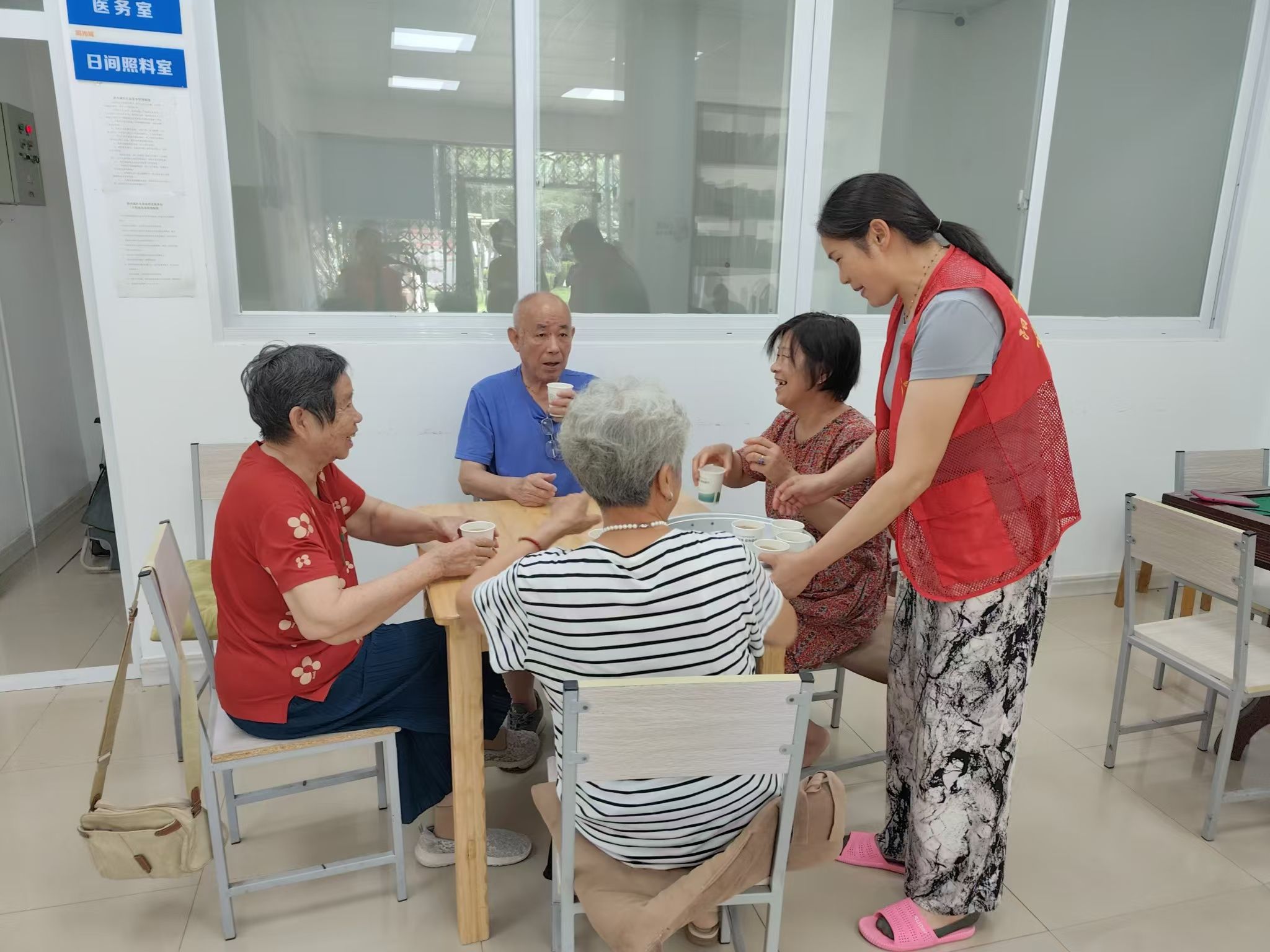 车谷融媒8月4日讯 入夏以来,沌阳街道阳光城社区居家养老服务中心开设纳凉点,为居民准备可口的冰镇绿豆汤、清甜的西瓜、书刊报纸、电视音响等,让居民在炎炎夏日中享受清凉和欢乐。
