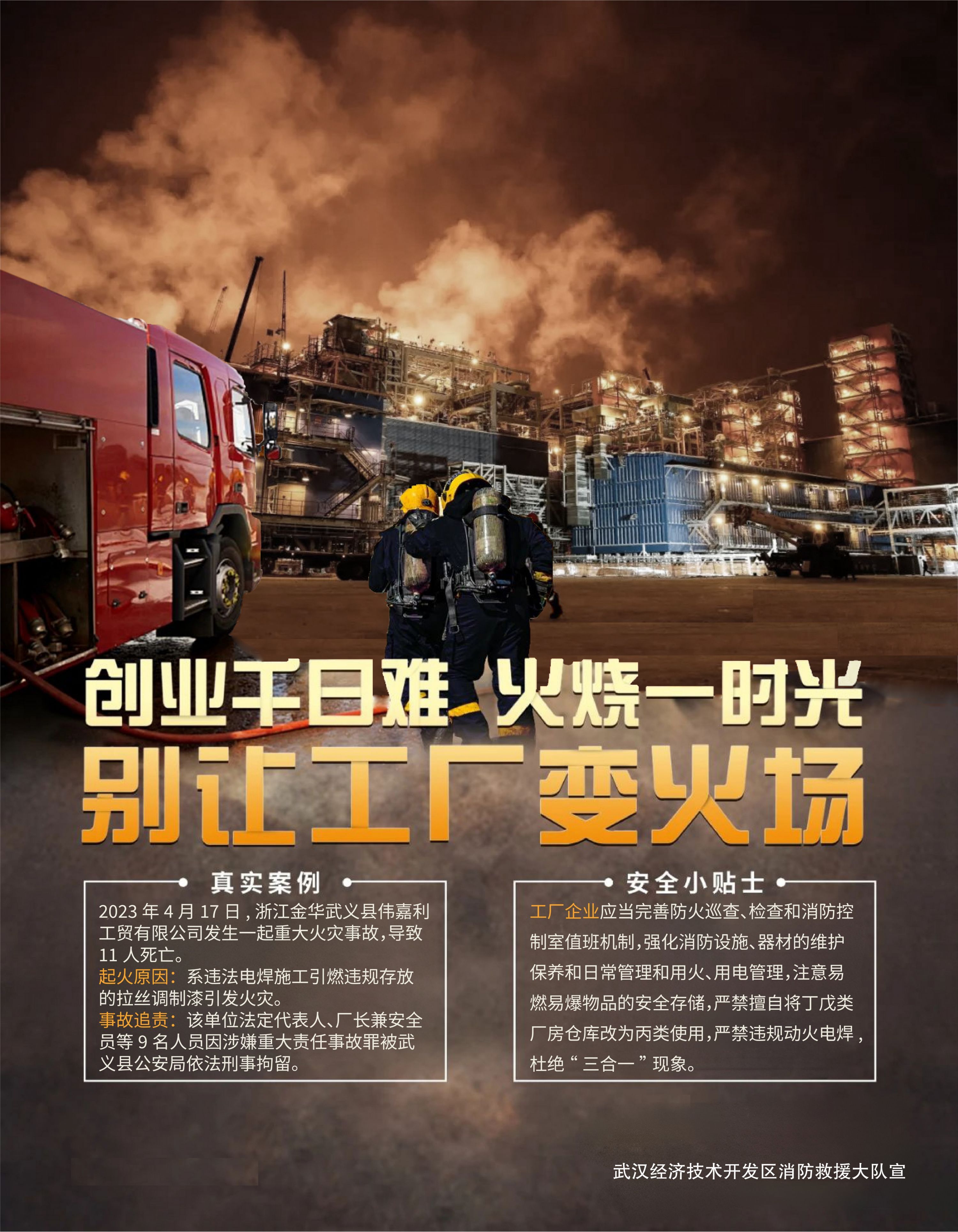 夏季高温 各工厂企业在生产经营的过程中 消防安全不容忽视 夏季天气炎热 工厂耗电量大 车间内人员密集 仓库易燃可燃物多 稍有不慎 极易发生火灾事故 工厂企业 更是消防安全管理的重点 那么到底企业应该如何安全生产? 快来一起学习一下 (来源:区消防救援大队) 【编辑:缑曼】