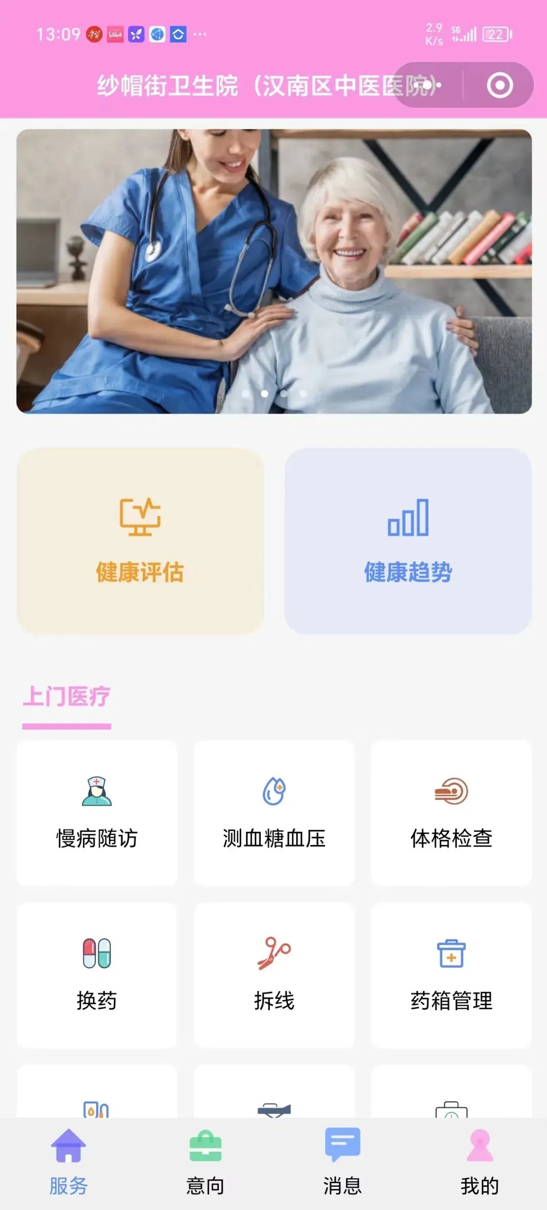 针对社区老年人居家养老特点和需求,由华中科技大学医养结合研究中心联合纱帽街卫生院共同开发的一款医养结合小程序“怡养通”在现场向居民们推出。该小程序为家庭医生团队和居民端构建了一个很好的互动平台,老人或家属通过点击内置服务项目,将为年老体弱、行动不便、无人照料的签约居民提供能力可及的上门医疗服务或咨询(能否上门及费用由医疗机构评估约定)。居民们可以搜索关注“武汉市汉南区中医医院”公众号,点击“家医服务”菜单即可进入该平台。