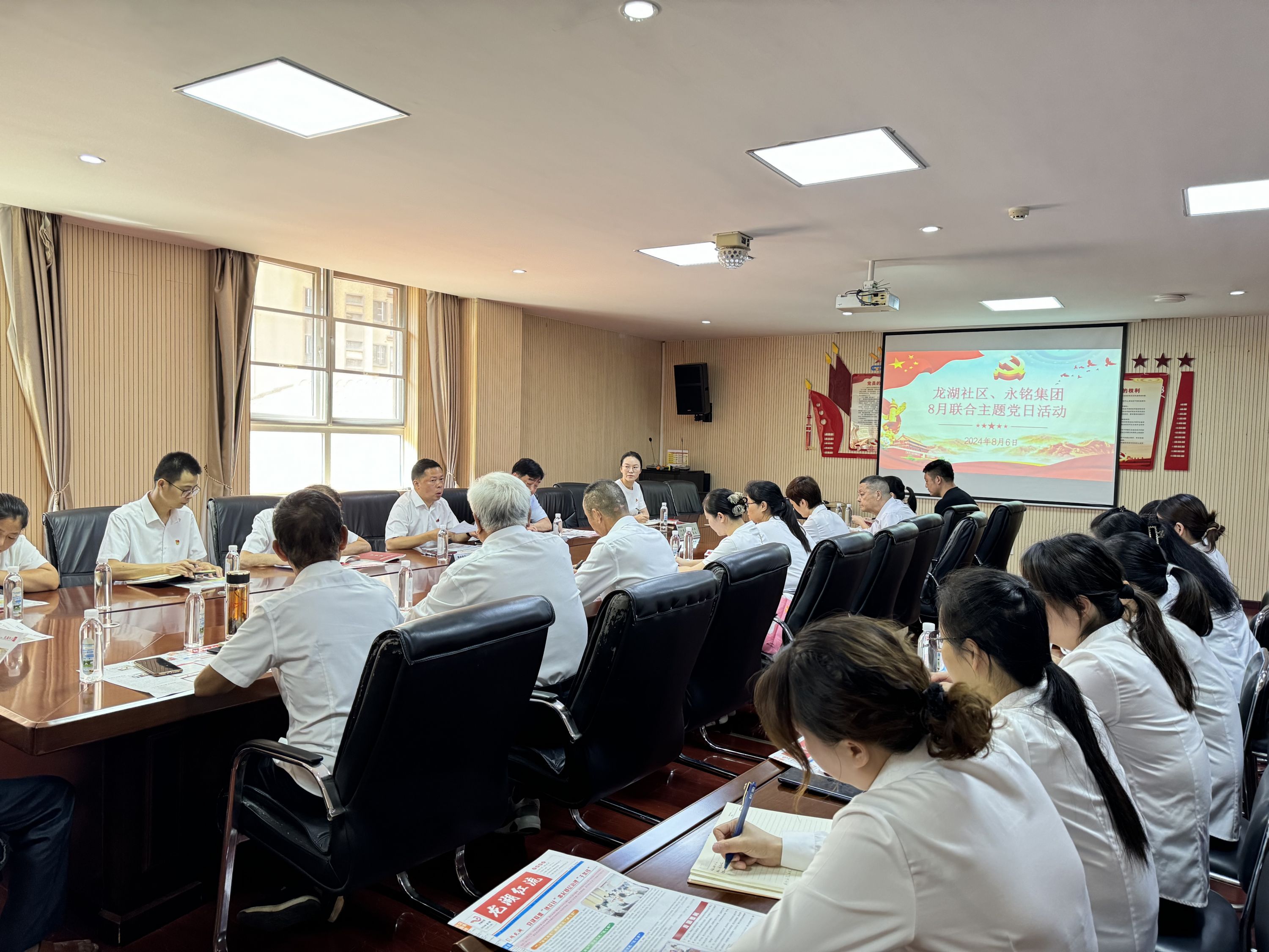 车谷融媒8月7日讯 8月6日,武汉经开区军山街道龙湖社区与共建单位永铭集团联合开展“学习贯彻党的二十届三中全会精神”主题党日活动。