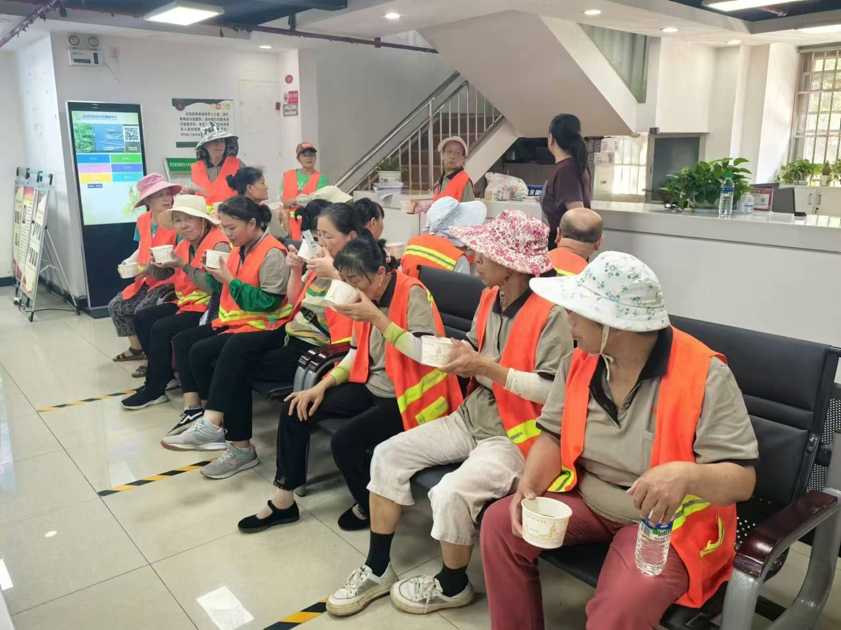 车谷融媒8月9日讯 8月8日上,纱帽街道午兴城社区联合社区志愿者开展“夏日送清凉”活动,为辖区环卫工人送去关怀和清凉。