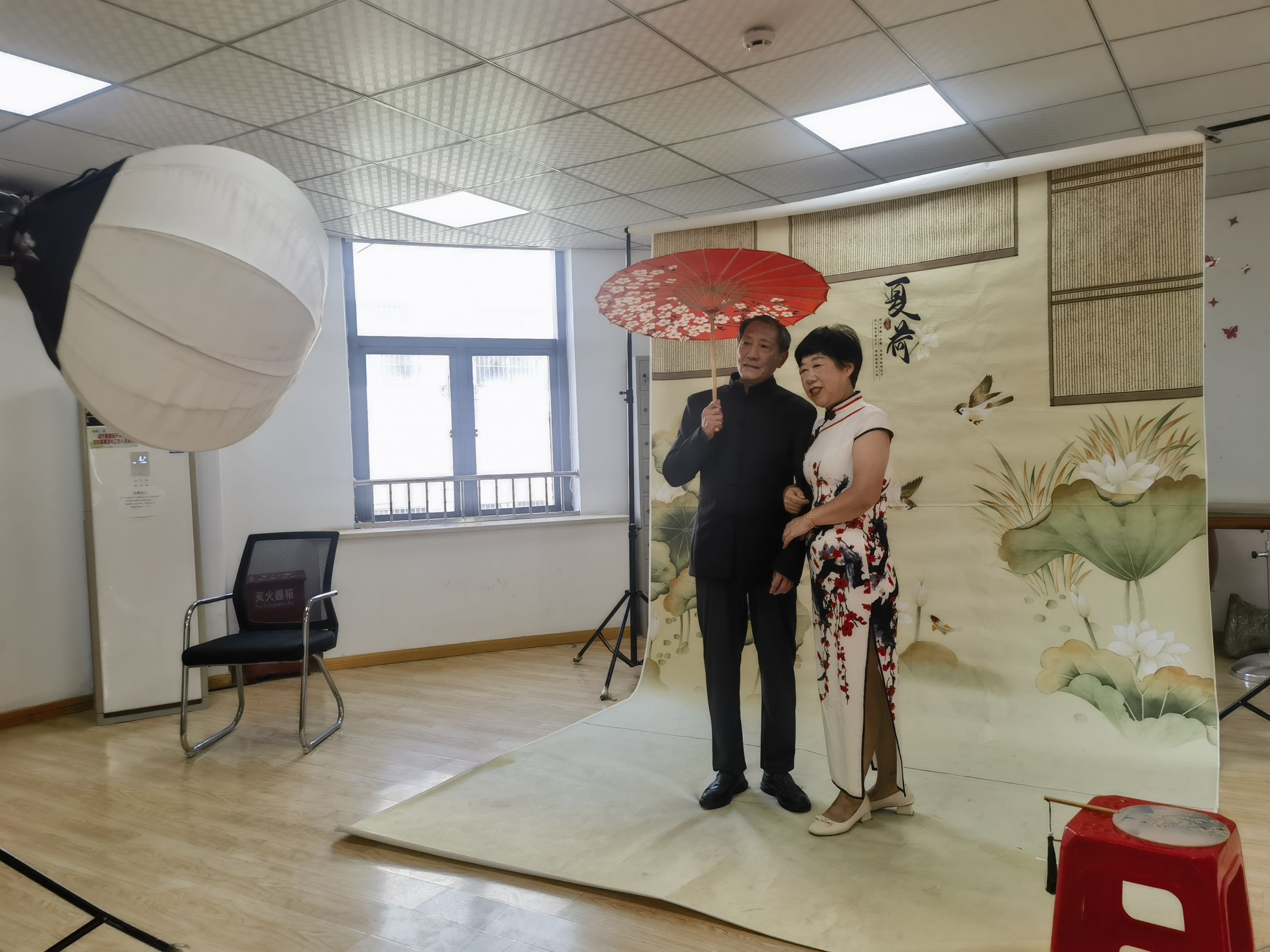 活动现场,10对银发夫妻在工作人员的指引下有序地化妆、挑选服装,一对对银发夫妻身着红色唐装,或深情对视,或相互依偎,或暖心呵护……每个深情相拥或者执手相握的瞬间都带领着大家重温年轻时的温情,在镜头的闪烁声中被定格成为永恒。