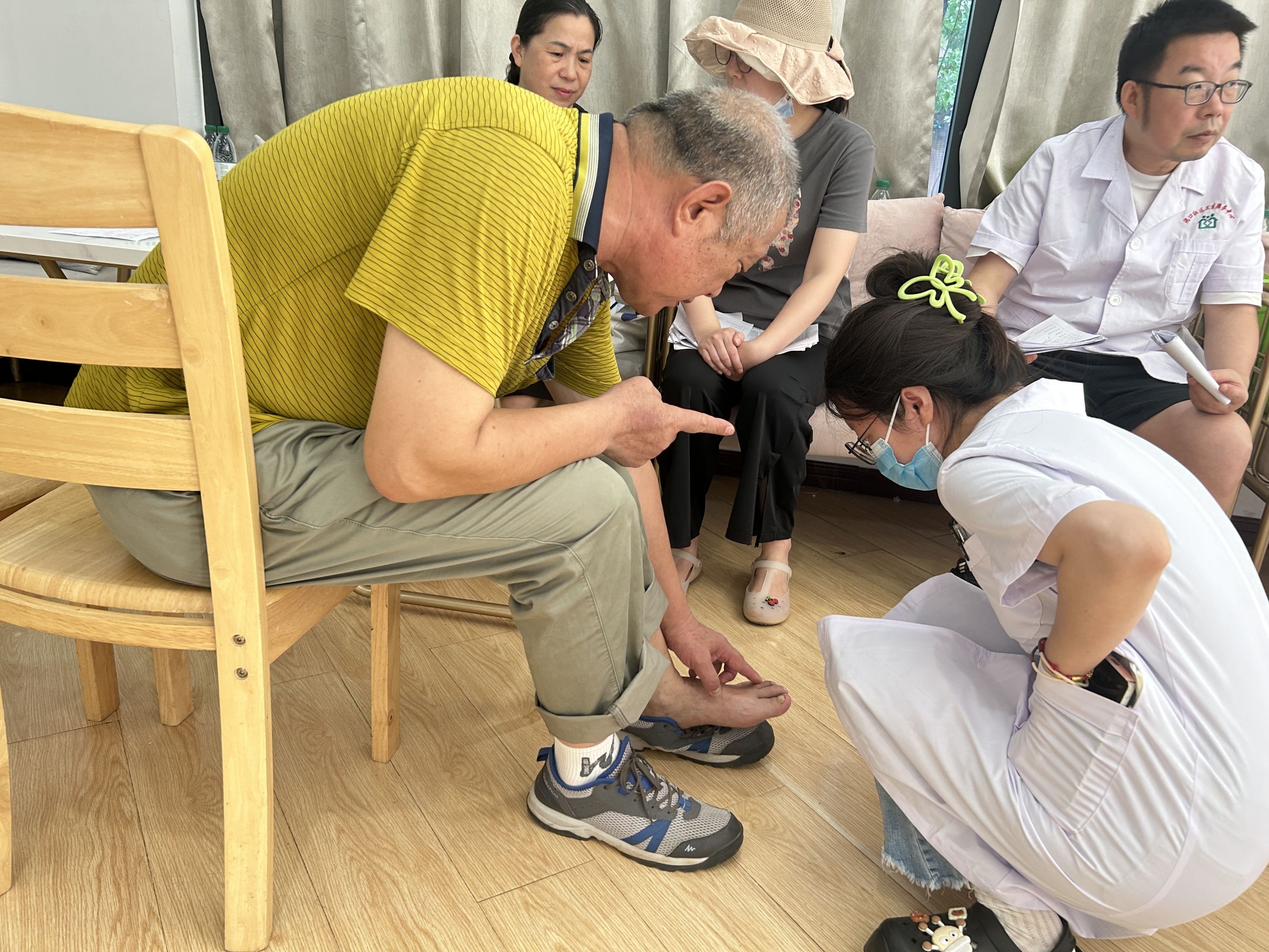 沌口卫生服务中心的医生们前往行动不便的居民家中,为其提供上门服务。每到一户,医生们都会细心地为居民量血压、血糖、血型,并询问居民的饮食和生活习惯,给予专业的建议,帮助制定适合的康复计划。