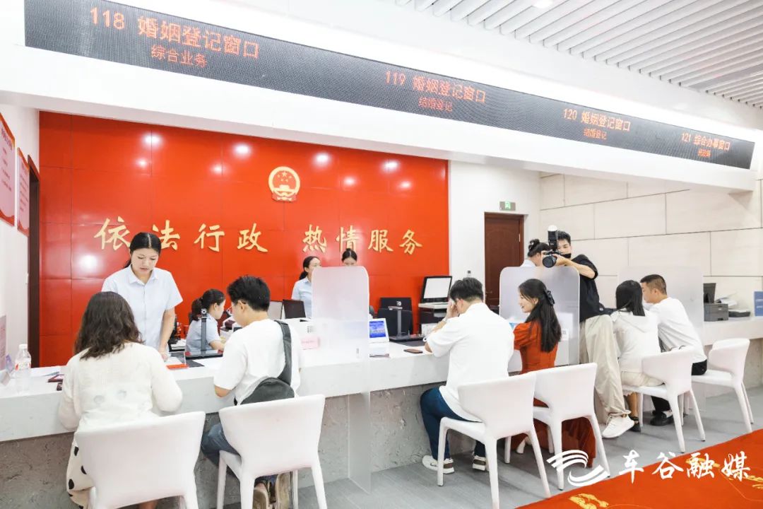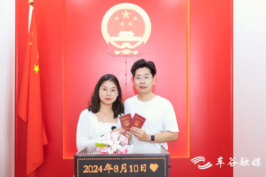 车谷融媒8月10日讯 七夕今宵看碧霄,牛郎织女渡鹊桥。每年农历七月初七是中国传统七夕节,不少新人在这个浪漫节日完成自己的人生大事。今年七夕恰逢周末,今天一大早,记者就来到武汉经开区民政局婚姻登记处,见证新人们开启幸福新生活。