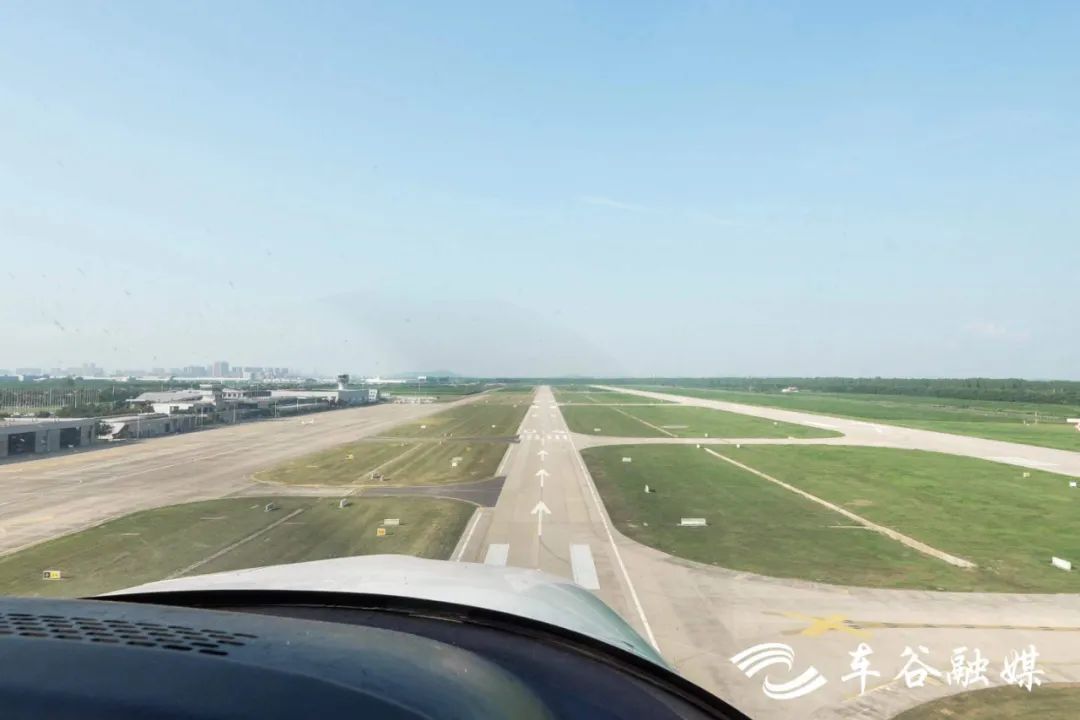 记者登上飞机,飞机缓缓驶入跑道,加速、爬升、盘旋飞行,舷窗外碧空如洗,波光粼粼的长江尽收眼底,远远望去,青山含黛、碧水穿城,星罗棋布的村庄、工厂点缀其中,仿佛置身于山水画,美不胜收。