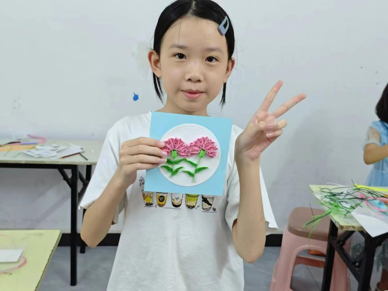 在老师的耐心指导下,孩子们纷纷拿起手中的纸条和工具,开始动手创作。他们小心翼翼地卷曲纸条,精心设计着自己的作品。有的孩子制作出了绚丽多彩的花朵,有的则拼出了可爱的小动物,每一件作品都展现了孩子们独特的创意和心灵手巧。
