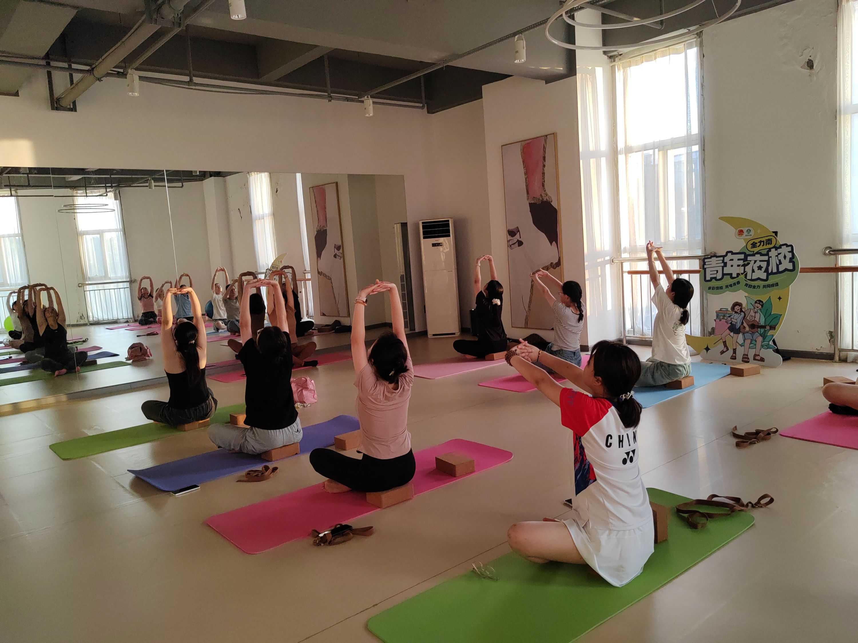 在社区新时代文明实践站舞蹈室,参加瑜伽课程的职工们早早来到教室,做好上课准备。伴随着轻柔舒缓的音乐,瑜伽老师开始了细致讲解、示范和指导,大家在一招一式中舒缓压力。
