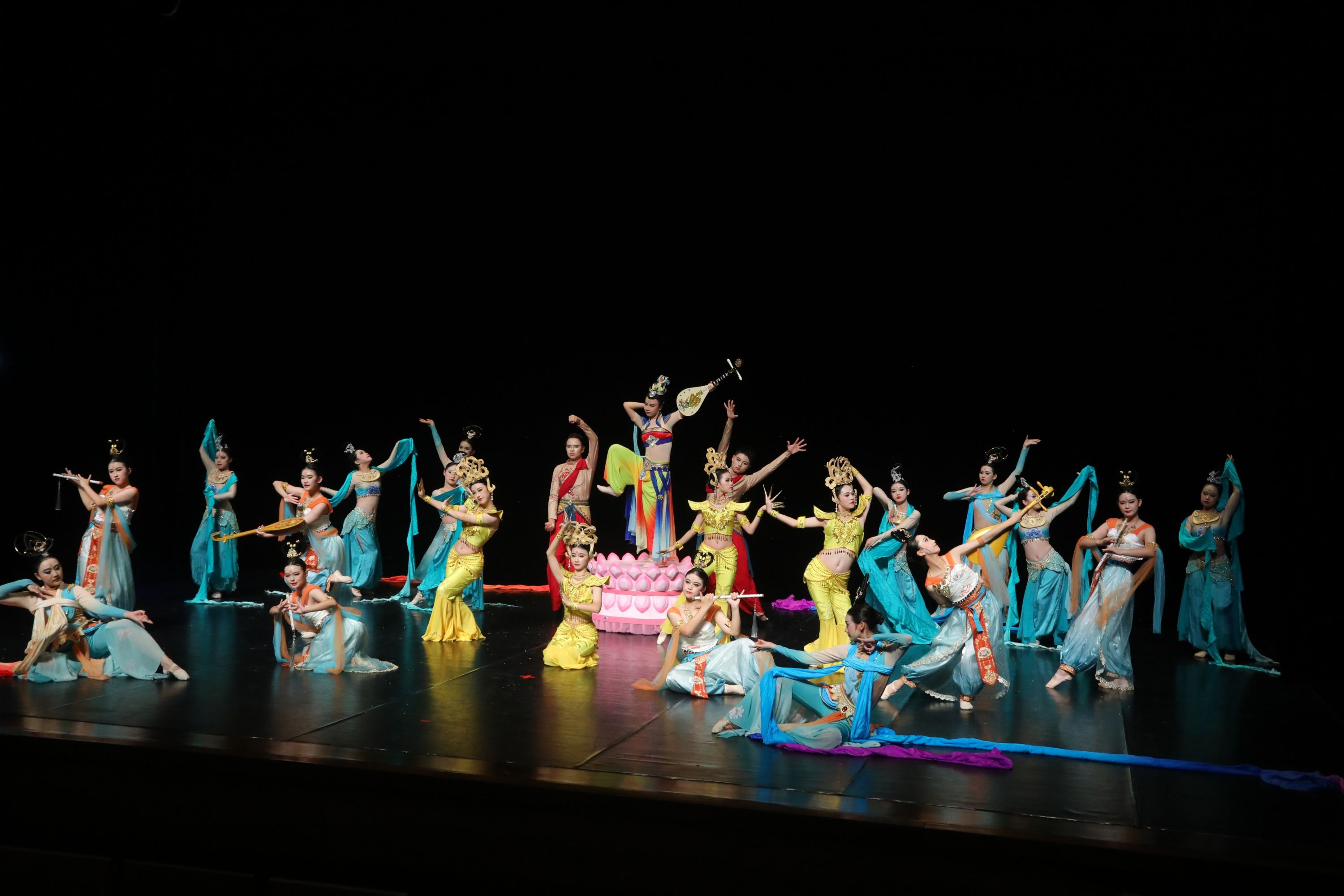 武汉经开区一中舞蹈队23名优秀学子登上清华大学舞台复活千年壁画,呈现敦煌盛景,作品《丝路繁花》惊艳飞天的曼妙仙女凌空蹁跹,大唐盛世百乐齐鸣,一幅美轮美奂的丝路风情呈现开来。学生们通过了解和演绎不同的舞姿造型,传承了包容开放、向善守正、通而不统、和谐共生的敦煌精神。
