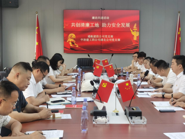 车谷融媒8月30日讯 近日,通航建投公司党支部、中冶建工四公司湖北公司党支部在新兴产业促进中心(一期)项目部,开展“共创清廉工地,助力安全发展”联合主题党日活动。