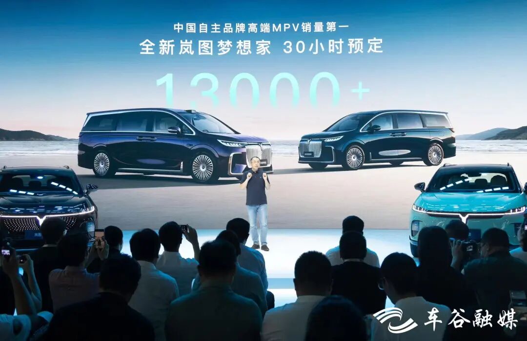 8月28日,同样在成都,岚图与华为携手打造的首款车型——全新岚图梦想家正式开启预售,推出乾崑版与鲲鹏版两款产品。两天后,全新岚图梦想家再次亮相2024成都国际车展时,已拿下了超过1.3万台订单。