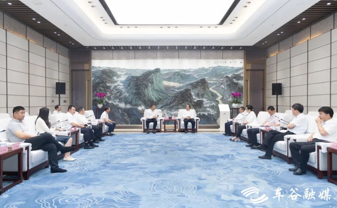 车谷融媒9月3日讯 9月3日,武汉汽车焕新消费季启动暨中国车谷品牌运营中心揭牌活动在武汉经开区举行。活动前,市委常委、汽车制造和服务产业链链长、武汉经开区工委书记刘子清与东风公司董事长、党委书记杨青,新华社湖北分社分党组书记、社长惠小勇,中央广播电视总台湖北总站党委书记、常务副召集人王亚民等出席活动的重要嘉宾座谈交流。