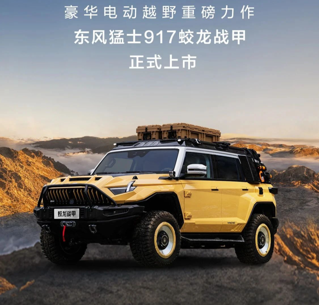 东风猛士科技是东风汽车2022年推出的豪华电动越野品牌。作为猛士品牌“一车一价格,一人一座驾”高端定制服务的重要成果,东风猛士917蛟龙战甲以原创设计、极致越野和智能科技,成为中国百万级豪华电动越野新标杆。