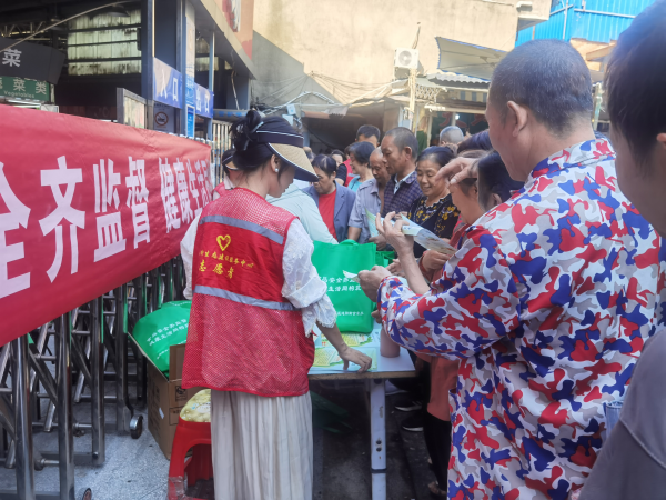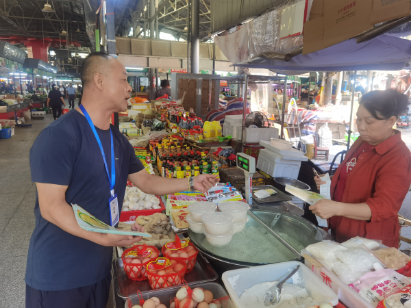 随后,工作人员一行深入市场内各商铺、摊位,向各商户发放食品安全宣传资料,提醒他们一定要严把食品关,严格落实食品加工和经营的各项制度措施,自觉拒绝使用不合格食材,杜绝“三无”、过期或变质食品上架。