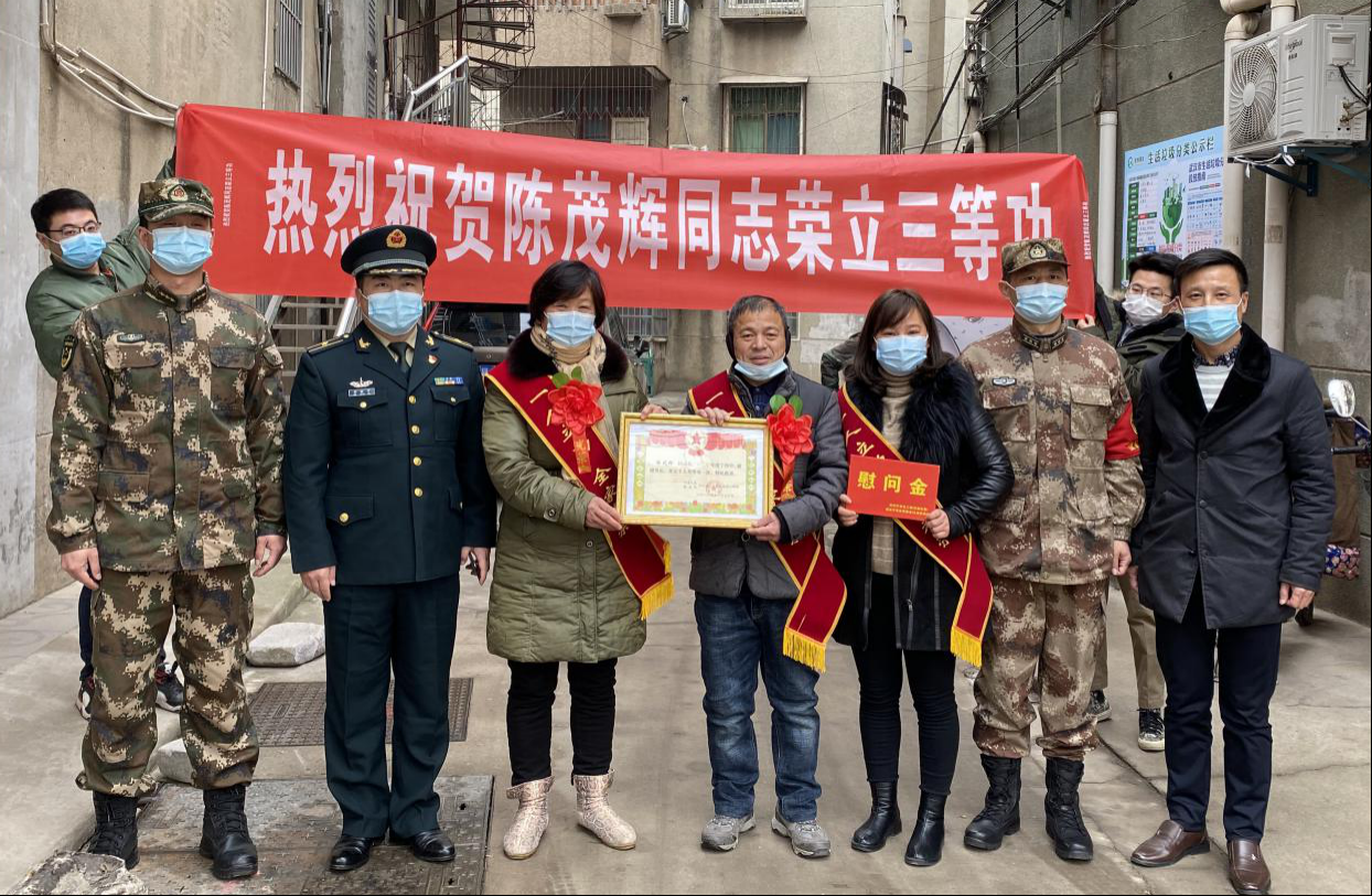 车谷融媒12月25日讯 12月23日上午,武汉经开区(汉南区)退役军人事务局、区人武部联合中国人民解放军96717部队,为荣立个人三等功的现役军人陈茂辉家庭送去喜报和慰问金,向军属表示热烈祝贺和诚挚慰问。