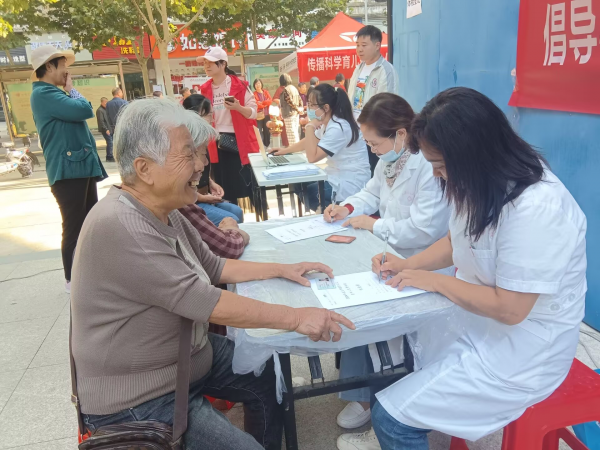 车谷融媒10月14日讯 10月11日,纱帽街道绿苑路社区联合社区卫生服务站(汉南安康医院)举办重阳节义诊活动,为辖区内65岁以上的老人免费检查身体。