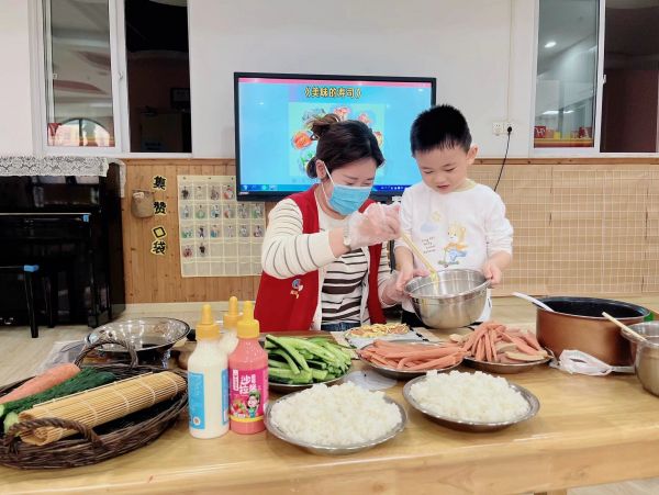 为让学生体验餐桌美食的制作,学校请家长走进班级开展食育活动。学生们分工合作,有的准备材料,有的清洗工具,还有的分类摆放餐具。看着自己的劳动成果,孩子们兴奋不已。
