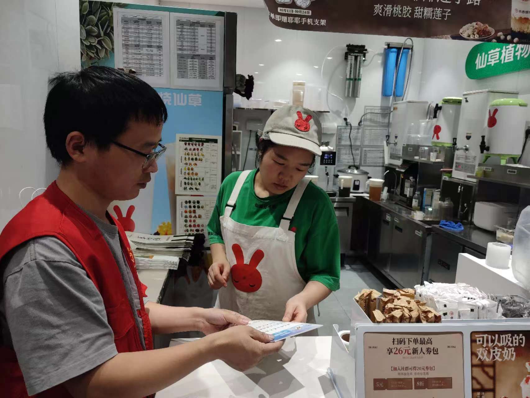 活动中,社区志愿者走访临街商铺、超市等经营场所,向商铺经营者发放宣传手册10余份,向广大食品经营者宣传诚信自律、依法依规生产经营,做良心买卖,引导经营者积极学习食品安全知识,提升自身的食品安全管理水平。