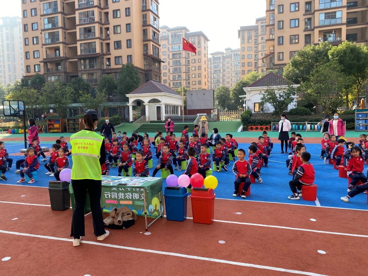 社区开展的垃圾分类亲子活动。