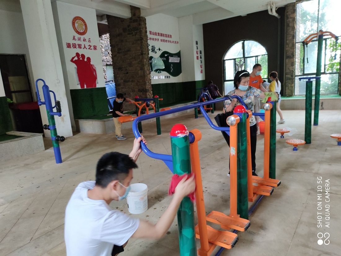 在龙湖社区,每周五都是集中的“清美家园”活动时间。在这一天,从社区工作人员到各驻社区单位的党员,都会集中到楼栋架空层、广场、主干道等公共场所进行路面打扫、垃圾清理、公共设施清洗等活动。
