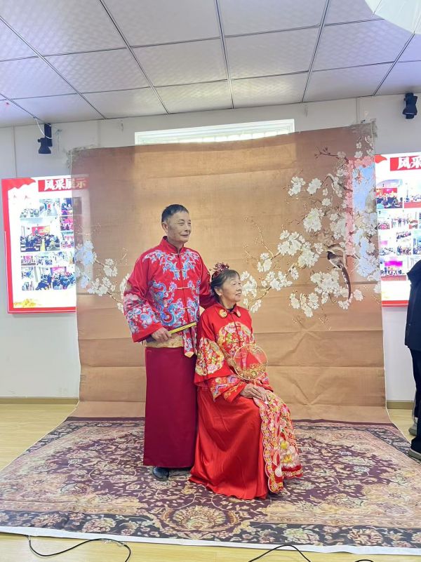 在工作人员的指引下,老人们挑选自己喜欢的衣服。志愿者化妆师用灵巧的双手为老人们装扮出精致的妆容,老人们个个神采奕奕,眼中泛着光芒。魏凤兰奶奶和老伴挑选的中式秀禾,看着镜中的自己第一次描眉画黛,老人有些羞涩地低下了头。“爷爷奶奶,笑一个,看镜头!”通过摄影师耐心的指导和幽默的语言,缓解了他们紧张的情绪,每一对老人的脸上都洋溢着幸福的微笑。活动现场充满着欢声笑语,仿佛回到了他们年轻的时光,老人们的幸福笑容被一次次定格。