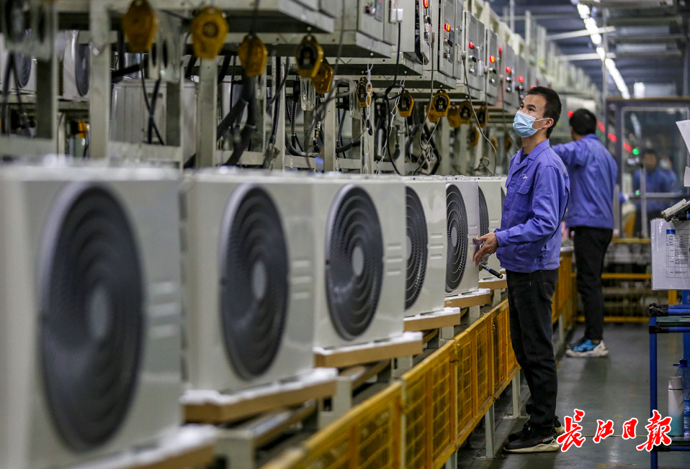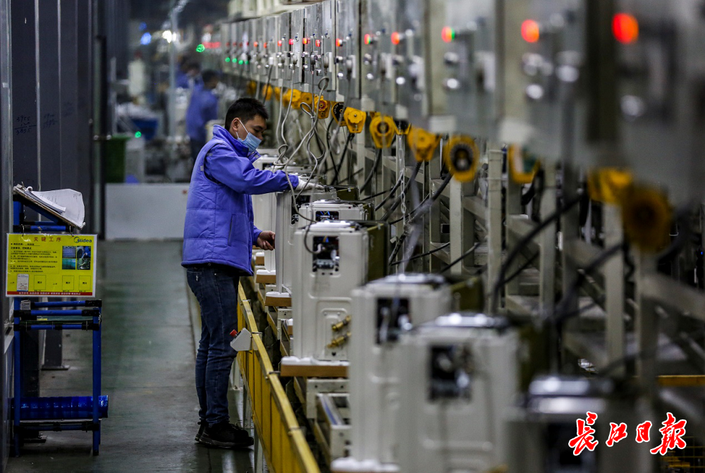 ▲美的武汉工厂生产线满负荷运行。记者陈亮 摄