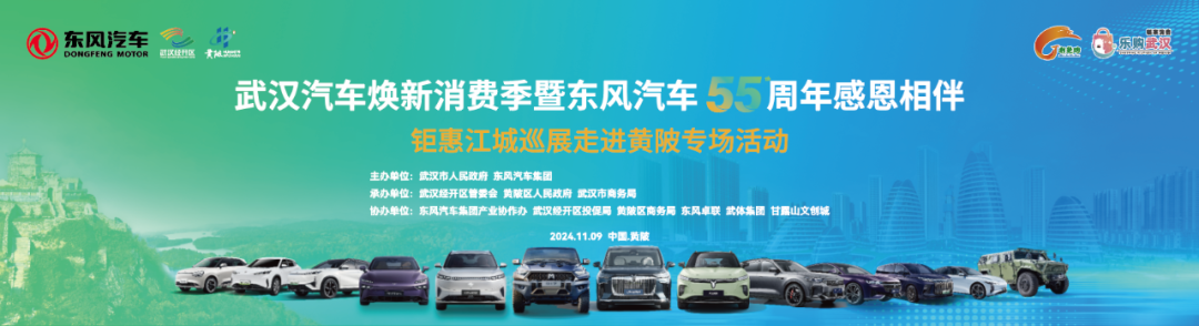 东风汽车55周年感恩相伴-钜惠江城巡展黄陂站活动由武汉市人民政府、东风汽车集团主办,武汉经开区管委会、黄陂区人民政府、武汉市商务局承办。此次巡展首站活动在甘露山文创城举行,在为期两天的活动中,市民除了可以看“车谷造”好车,还可以欣赏黄陂大鼓、楚歌等地方特色浓郁的精彩文艺演出。