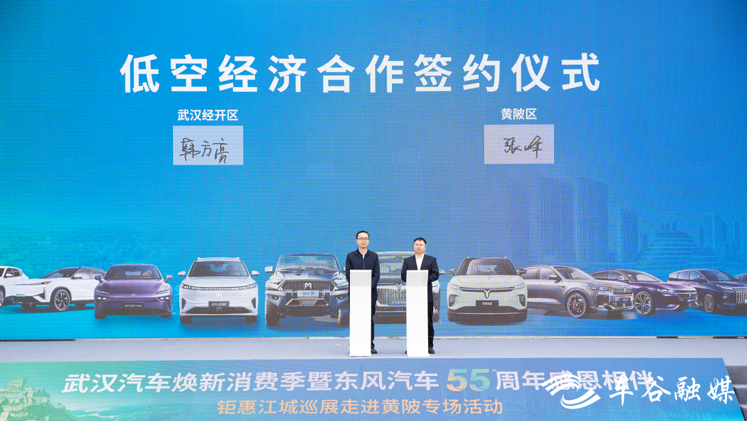 活动上,武汉经开区、东风汽车产业协作办分别与黄陂区签订低空经济合作协议和产业合作协议,东风汽车旗下各品牌商与甘露山文创城等黄陂文旅企业签订项目品牌合作协议。东风卓联公司相关负责人现场宣讲国家、湖北省汽车以旧换新购车政策、中国车谷品牌运营中心汽车消费券政策。