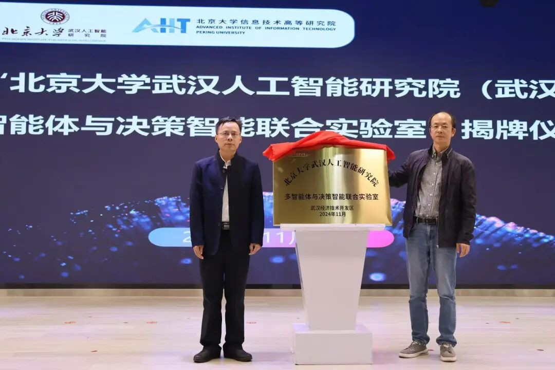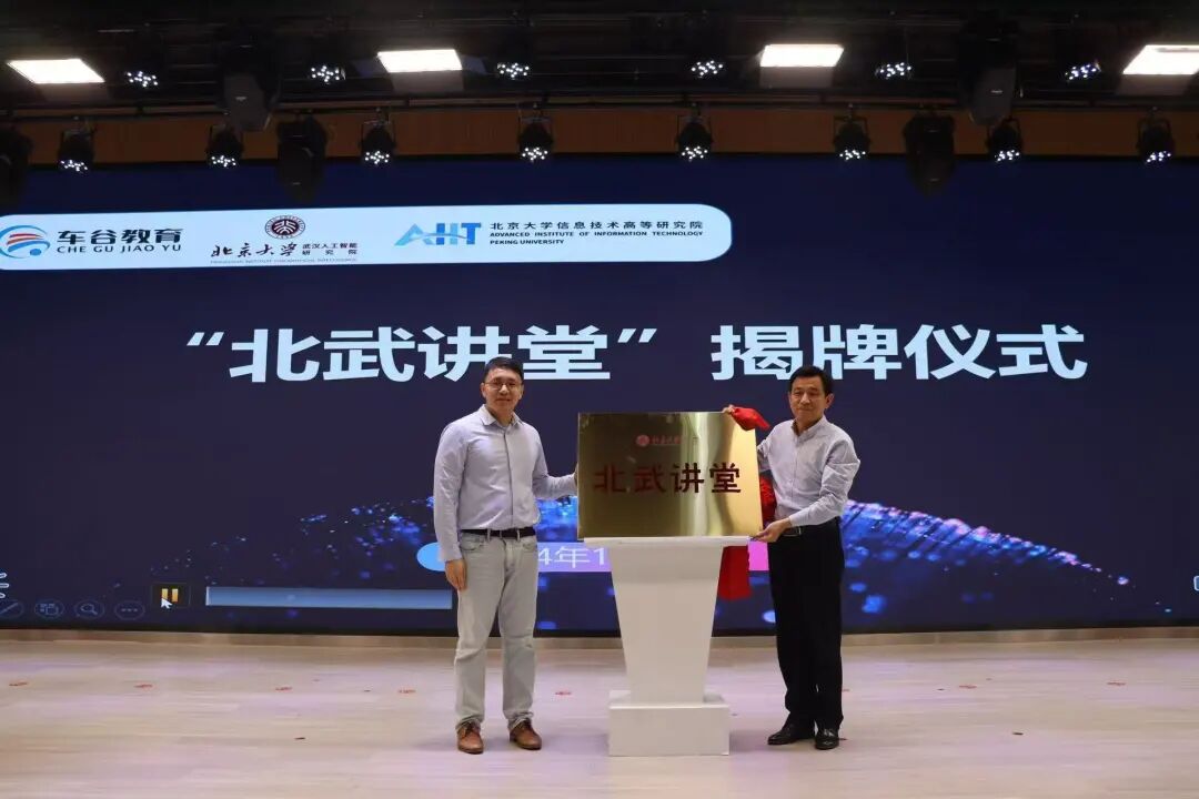 现场,武汉经开区与北武院共同为武汉经开区第一中学“北武讲堂”、“北京大学武汉人工智能研究院(武汉经开区)多智能体与决策智能联合实验室”授牌,区教育局为北大专家颁发聘书。