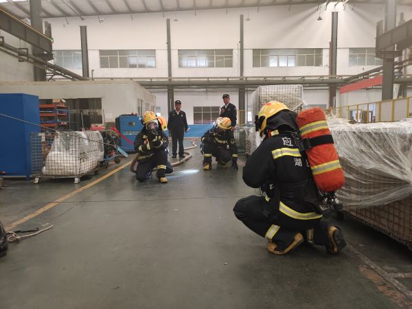演练现场,模拟武汉凌达压缩机有限公司生产车间发生火灾,火势迅速蔓延,并伴随大量浓烟,有人员受伤、被困,火场情况十分危急。