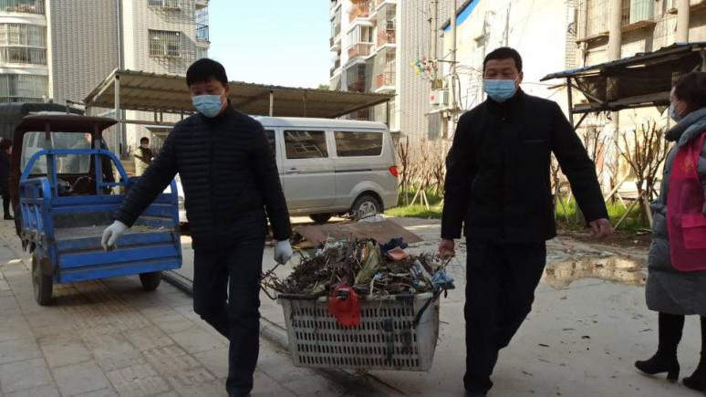“红帽子”小分队也分组包片,社区党委通过前期摸排,筛选出堆积废品较多、存在安全隐患的纱帽正街居民楼片区进行全面清理。社区志愿者们拿起打扫工具对院内卫生死角、垃圾杂物进行清理和消杀,并向居民宣传疫情防控、环境卫生等相关知识。