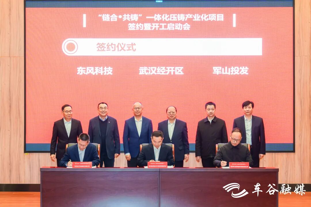 会上,武汉经开区、军山投发与东风电子科技签署合作协议,武汉经开区将为东风一体化压铸产业化项目的投资、建设、运营全生命周期提供支持与服务,特别是在产业创新、产业链协同、对接产业资源等方面,积极帮助东风电子科技争取各种政策与资源,促进项目做大做强,为区域经济转型发展做出更大贡献。