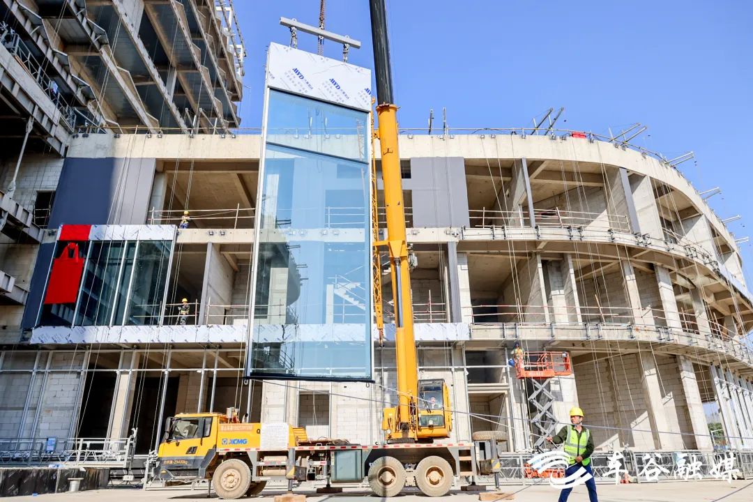 车谷融媒11月30日讯 吊车长臂挥舞,机械阵阵轰鸣,建筑工人们各司其职、忙碌作业……11月29日,天气晴好,位于武汉经开区军山新城的路特斯科技全球总部智造中心项目正在安装玻璃幕墙。项目负责人介绍,项目将于明年6月底完工,达到交付条件,分批投入使用。