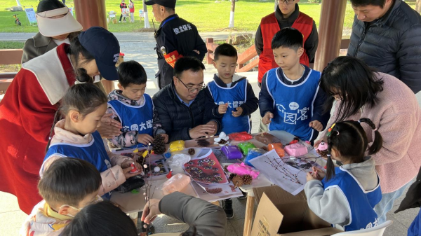 此外,“公园大课堂手工制作区”的活动也备受市民欢迎。在楚园涉江亭,专业老师耐心指导参与者学习黏土松果干花挂饰的制作方法和技巧。大家根据自己的创意和喜好选择材料搭配制作,最终完成了一件件精美的手工作品。果果同学展示着自己制作的手工作品,满脸喜悦地说:“这个活动真是太棒了!我不仅学会了手工制作,还更加深入地了解了垃圾分类的重要性。”