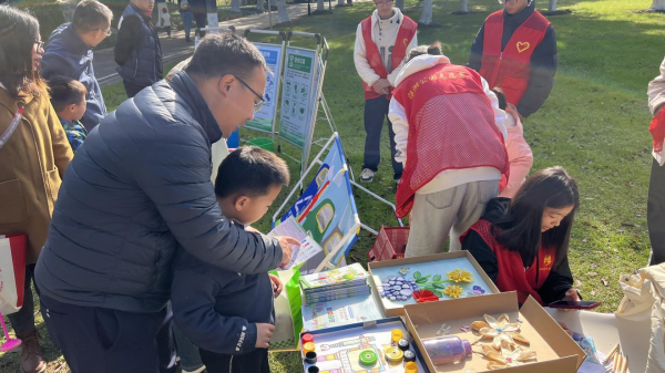 在“垃圾分类宣传展示区”,一排排宣传展板整齐排列,内容涵盖了垃圾分类知识、分类标准、处理流程及环保意义。公园活动组织者和志愿者们耐心地向市民讲解垃圾分类的重要性,并逐一解答他们的疑问。一位年轻的爸爸带着孩子一起学习垃圾分类手册,说道:“这个活动真是太好了,不仅让孩子学到了实用的垃圾分类知识,还培养了他的环保意识。”