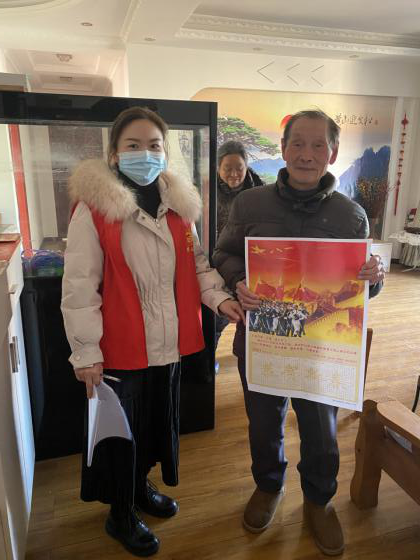 工作人员上门服务,将年画亲手送到退役军人家中,感谢军人军属对国防事业的支持,了解他们的生活状况,倾听他们的所思所盼。同时,结合市、区新冠肺炎疫情防控指挥部相关要求,积极宣传防疫知识,叮嘱他们做好个人防护,预祝他们度过一个平安祥和的新春佳节。