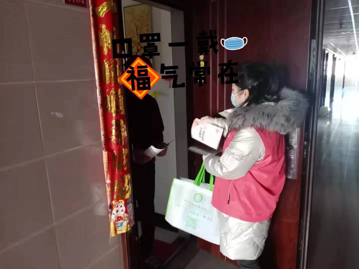 1月13日起,宁康园社区负责人刘凤全带领社区工作人员连日分组挨家挨户走进特殊家庭中,给居民派发口罩和防疫宣传单张,给居民讲解防疫注意事项,叮嘱居民做好个人防护。通过亲自上门探访慰问,让居民暖心安心,引导居民增强自我保护意识,减少恐慌和害怕的负面情绪。定期给他们送去温暖和关爱,尤其做好新冠肺炎康复患者的跟踪随访,加强心理疏导、康复指导和健康管理,帮助他们早日回归正常生活。