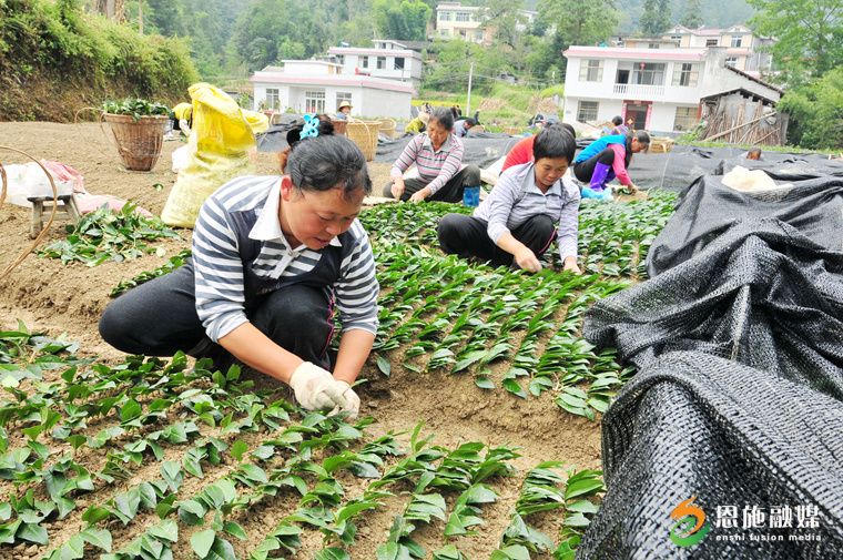 在恩施盛家坝镇,茶农在进行无性良种茶扦插。(2013年9月9日摄)