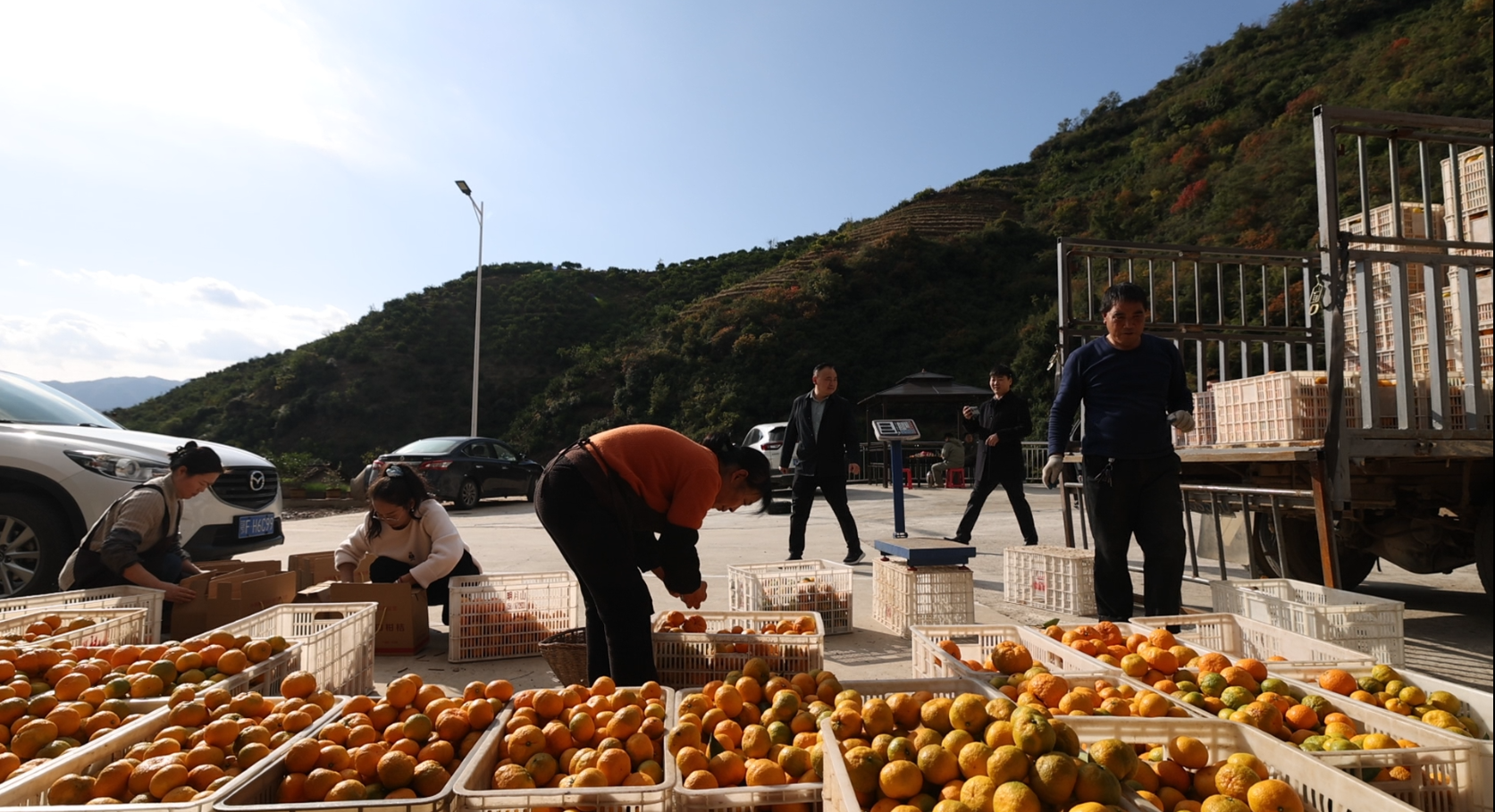“咱们这里三面环山,日照充足、雨量充沛,特别适合柑橘生长。”正在忙着帮果农对接客商的襄阳市南漳县巡检镇峡口社区党委书记张三中对记者说:“现在本地人可不好找,你们在镇上能看见的大多是外地客商,本地的男女老少有一个算一个都在山上摘果子哩!”