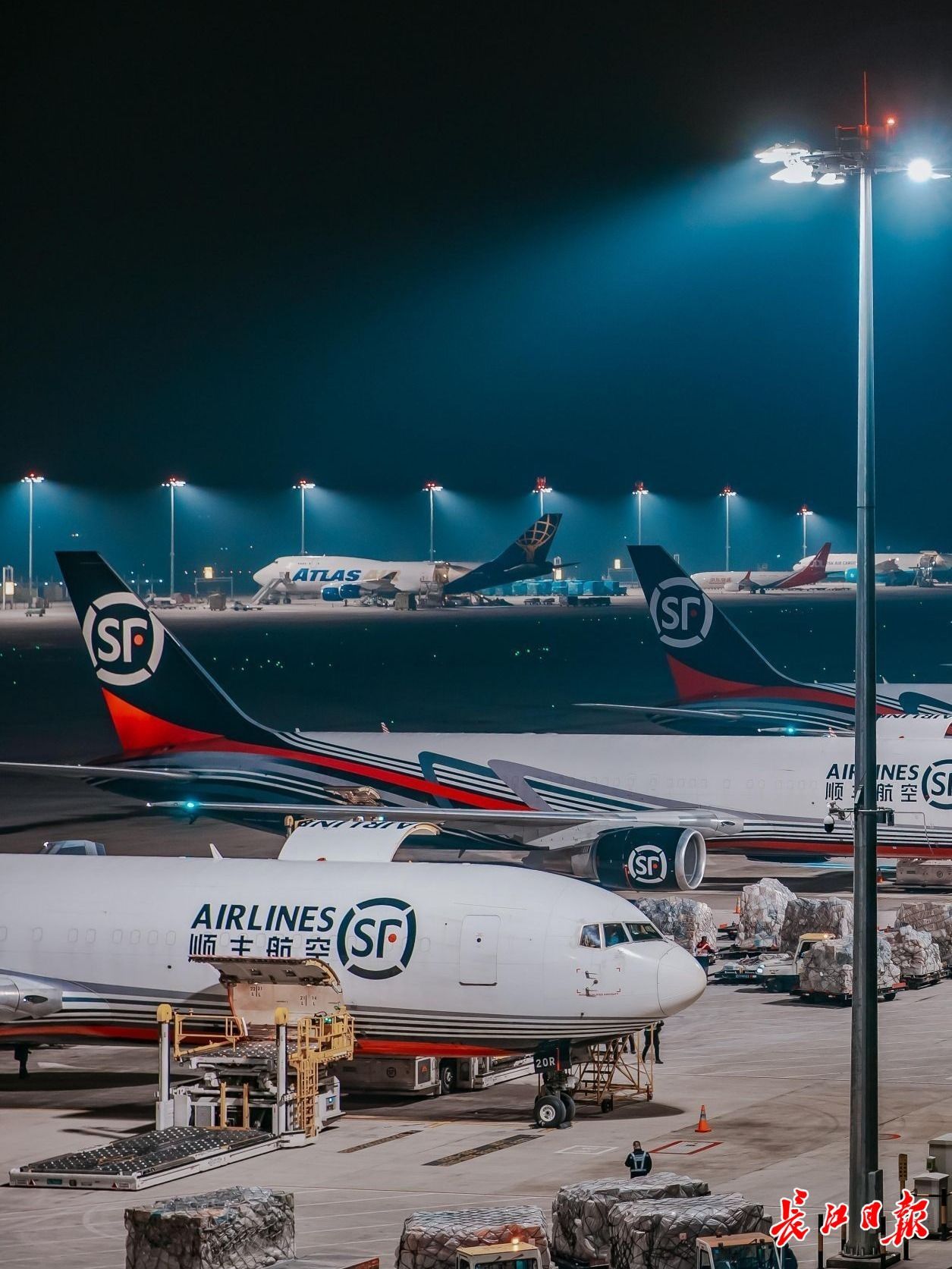 深夜,繁忙的花湖国际机场。 长江日报记者许魏巍 摄
