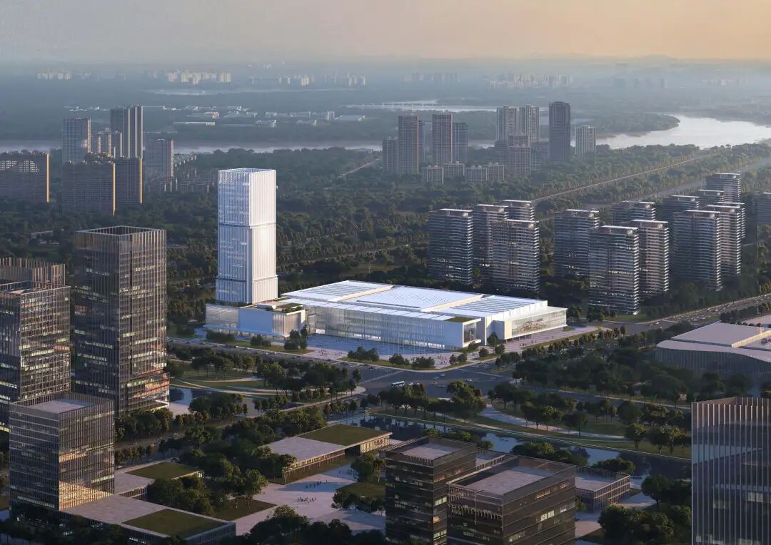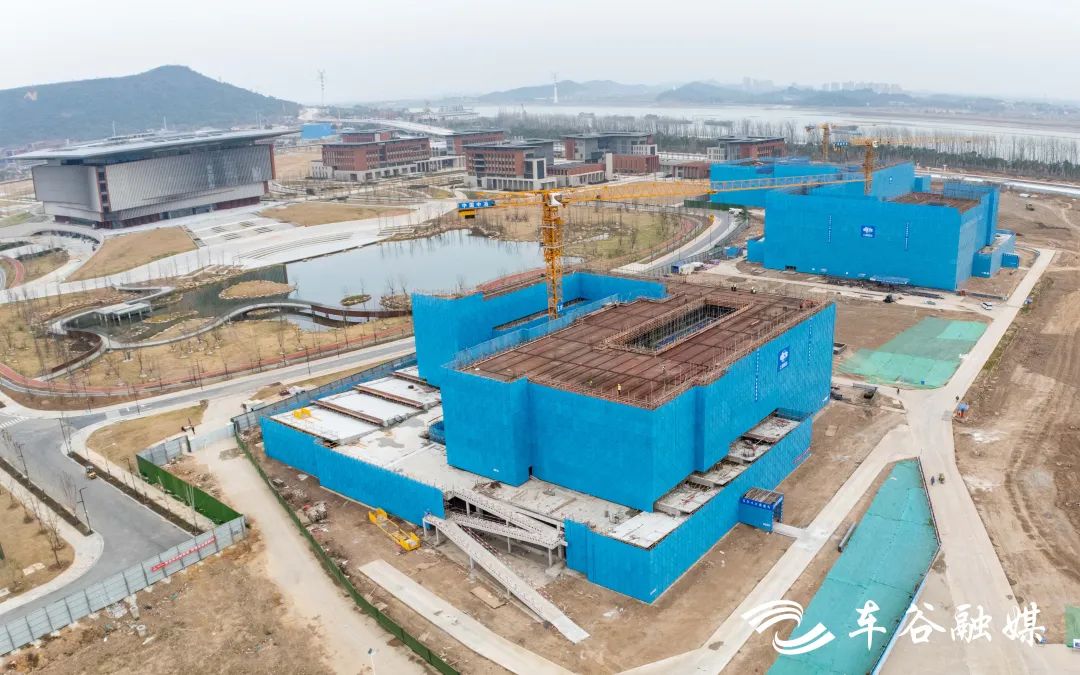 华中科技大学国际教育科技创新园区科创交流组团项目拟建设信息技术与人工智能应用学部和学术交流中心,包含三栋单体建筑,预计今年8月底完工交付。