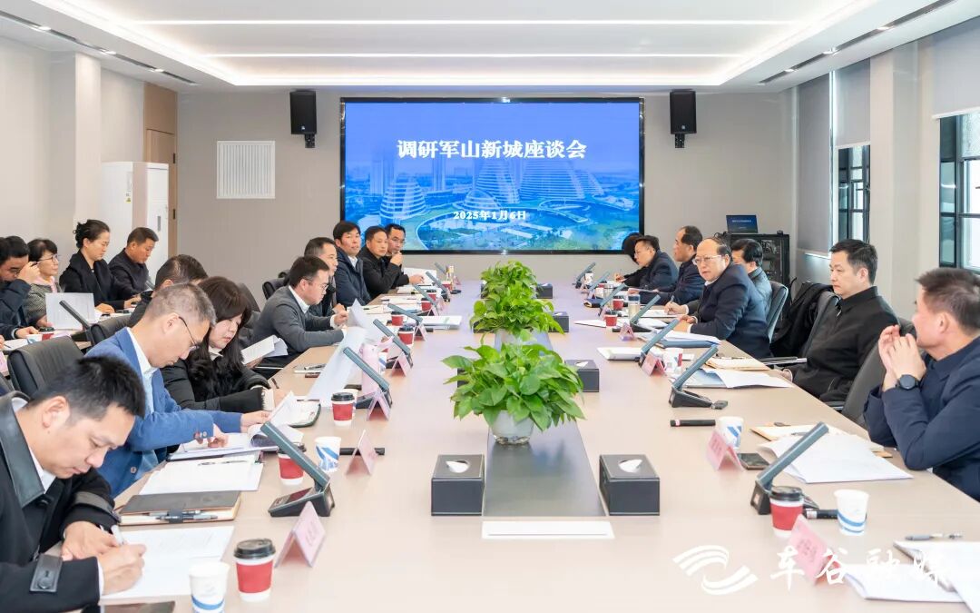 在随后召开的座谈会上,军山新城负责人汇报了园区2024年工作完成情况及2025年工作推进思路。